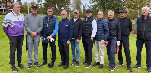 Tävlingsledare Hans och de tio som gick vidare efter 9 hål: Lars-Inge E., Torgny (tävl.led),